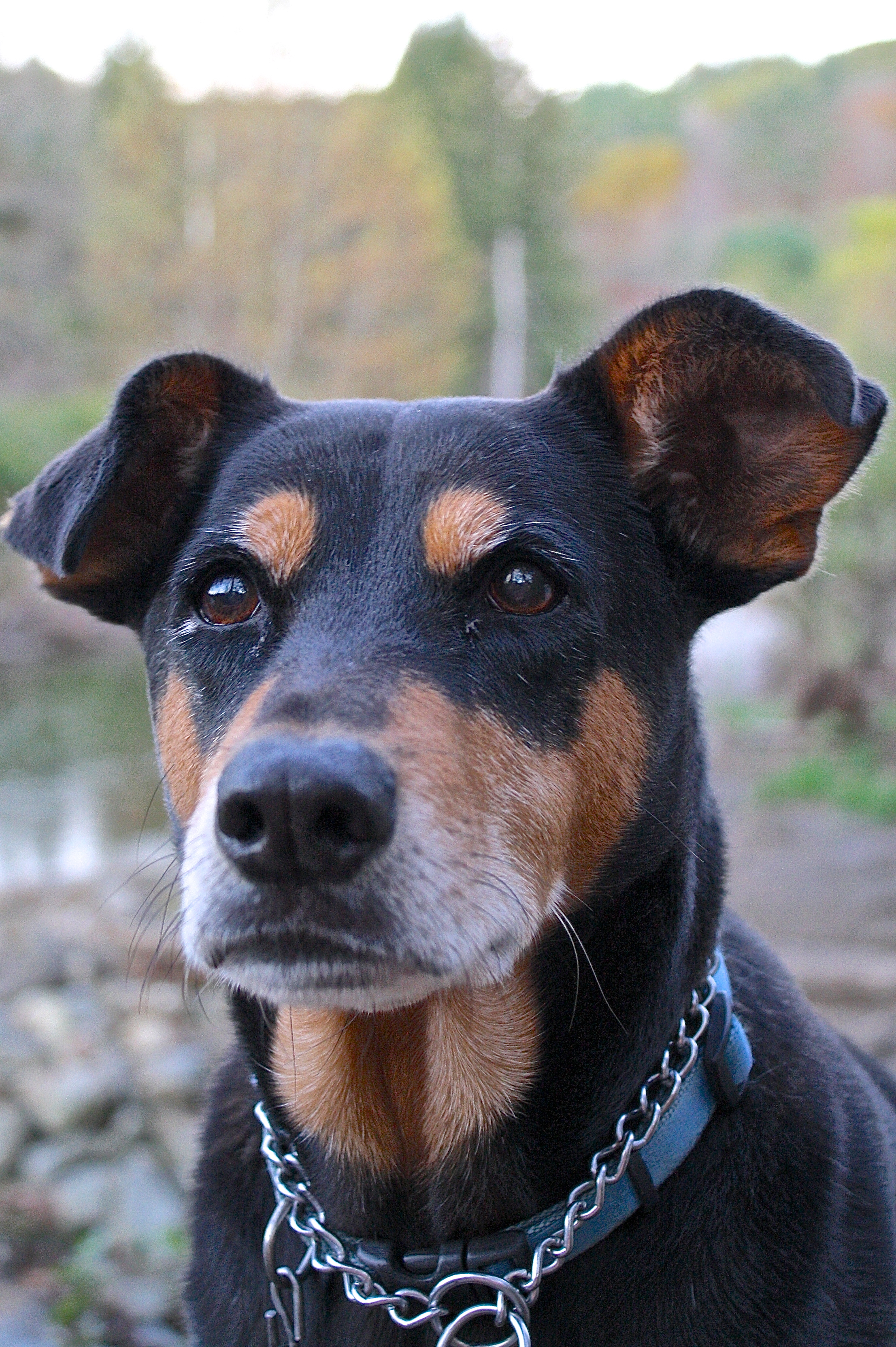 Naturally, she became stiff and sore, but our amazed vet pronounced her healthy. Fed several times daily, by the end of the first week home she had regained her original weight. It took her a long time to overcome her fear of walking in open fields, but resumed her role as sentry of the house and walking companion on the trails around home. She often turns tail and runs back to the house when she smells some animal that she fears as a threat but is invisible to my eyes. Our rule is she can be off-leash only close to the house, anywhere else that girl is attached to me physically as closely as she is emotionally.