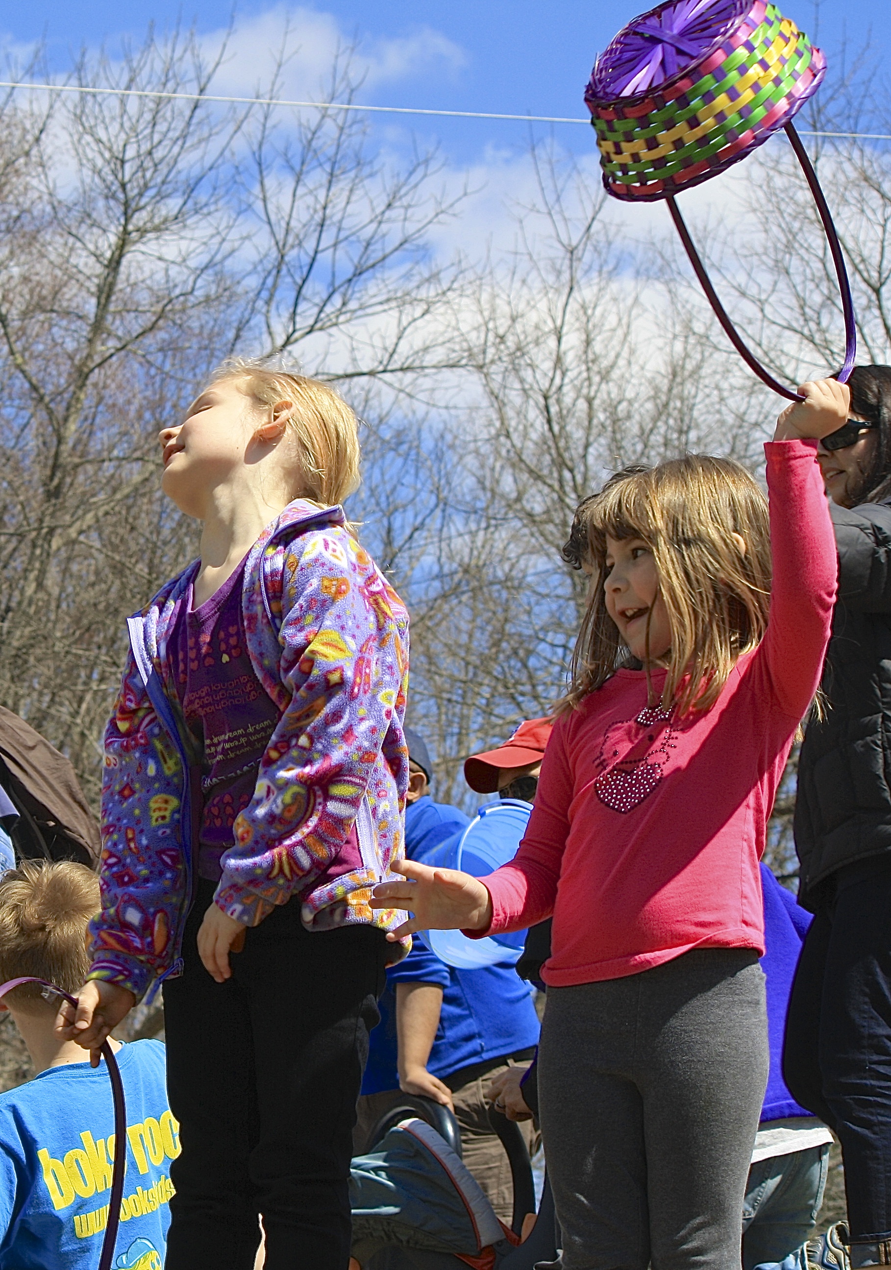 The young children of the town gather at the appointed time and with great excitement, hunt for eggs hidden at the base of trees, in tufts of grass and even around the play structure, dugout and bleachers.