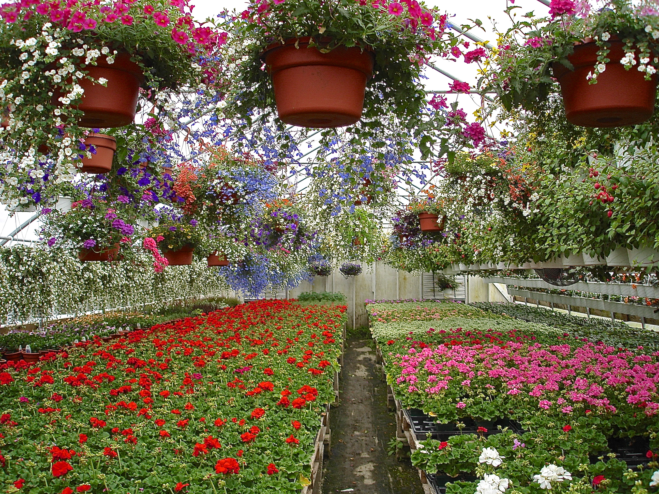 Young, lean and suntanned with a direct, blue-eyed gaze, assiduously works over 100 hours per week transplanting, feeding and watering his plants readying them for market. Young estimates he produces over 15,000 flats, pots, hanging baskets and deck (or patio) containers annually. The latter of these containers, which Young designs and creates as fully-planted mini-gardens, are made with 5-7 varieties of plants artistically arranged into stunning displays; many are one-of-a-kind and dazzling in variety.