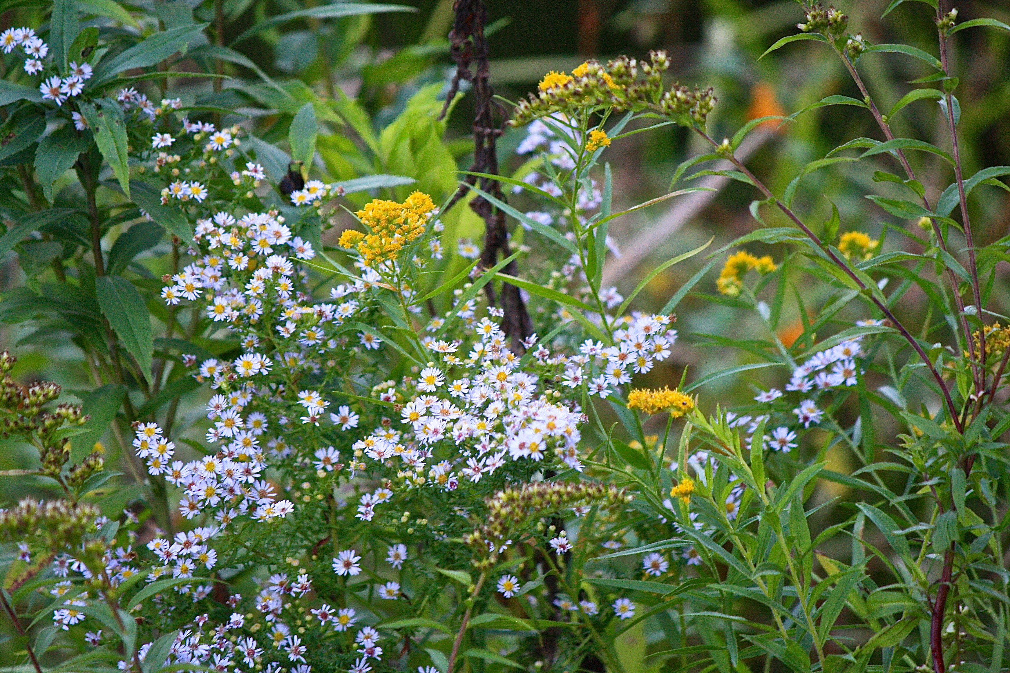 Although we still have perhaps a month to go before frosts completely diminish the garden, the plants are winding down; with their seed set, their mission is fulfilled. In the fields, the last wands of the goldenrod intermingle with New York, Heart-leaved and Calico Asters (Symphyotrichum novi-belgii, S. cordifolium & S. laterifolium, respectively) weaving a beautiful tapestry of gold, lavender, purple and white.