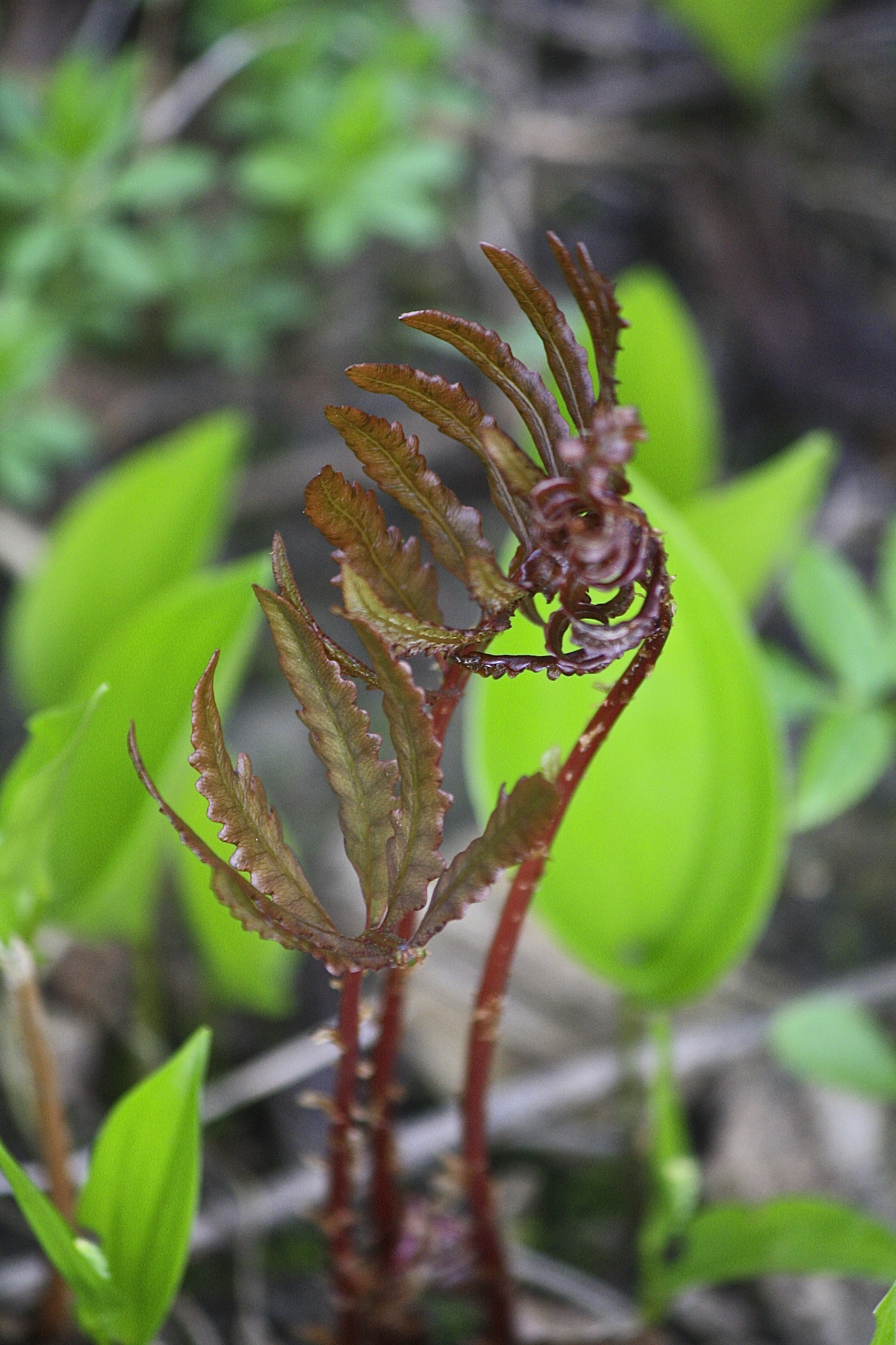 The unfurling of fern fiddleheads in spring is one of the things I look forward to every year. To me, each one is a work of art. Above is a lovely reddish-bronze Sensitive Fern (Onoclea sensibilis) named for its quick demise when touched by frost.