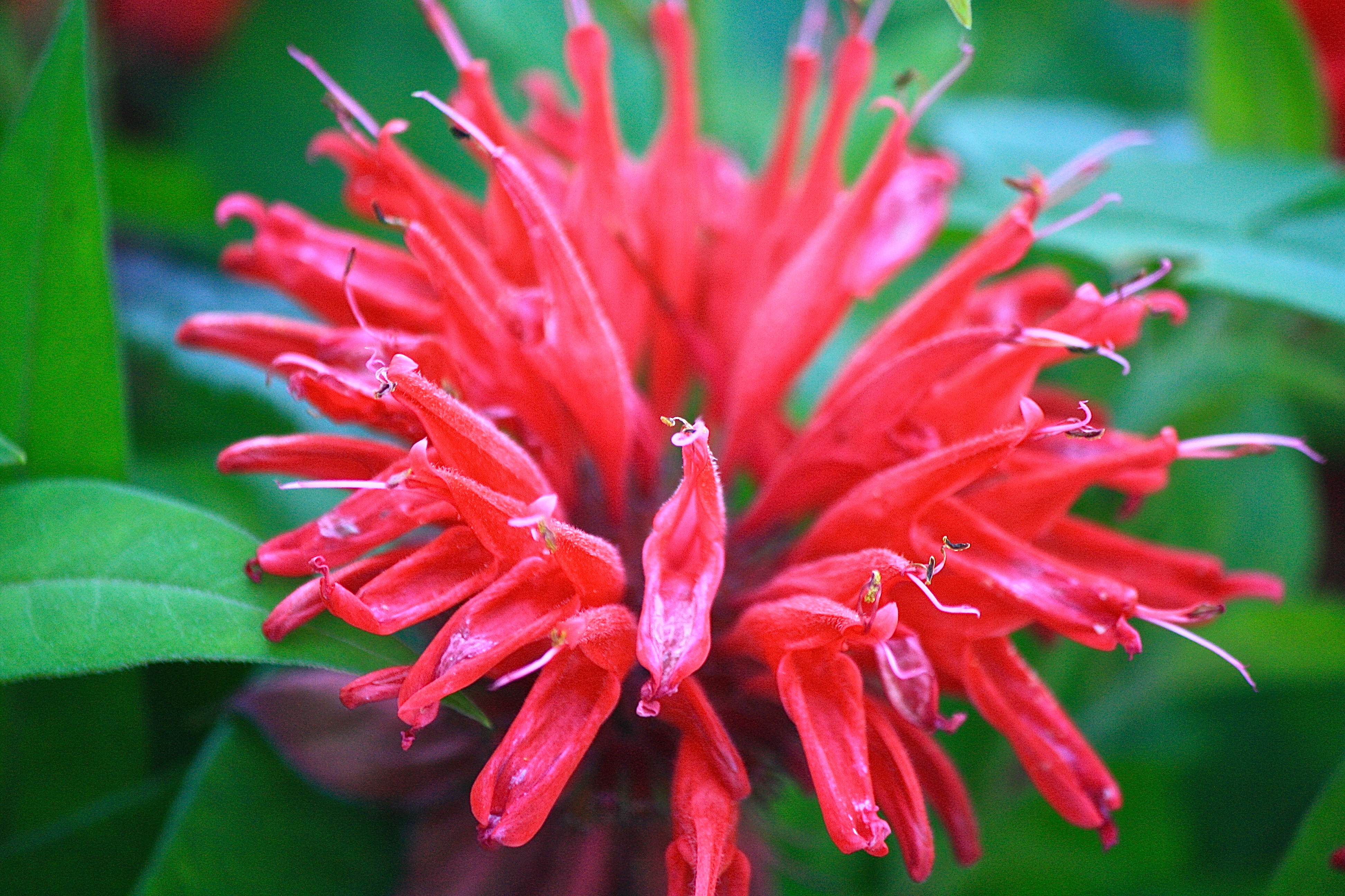 Polystichum acrostichoides and Monarda didyma are native to the eastern United States from Maine to Georgia, and west to the Mississippi River. Beebalm leaves can be made into a paste to soothe bee stings or drunk as a flavorful tea.