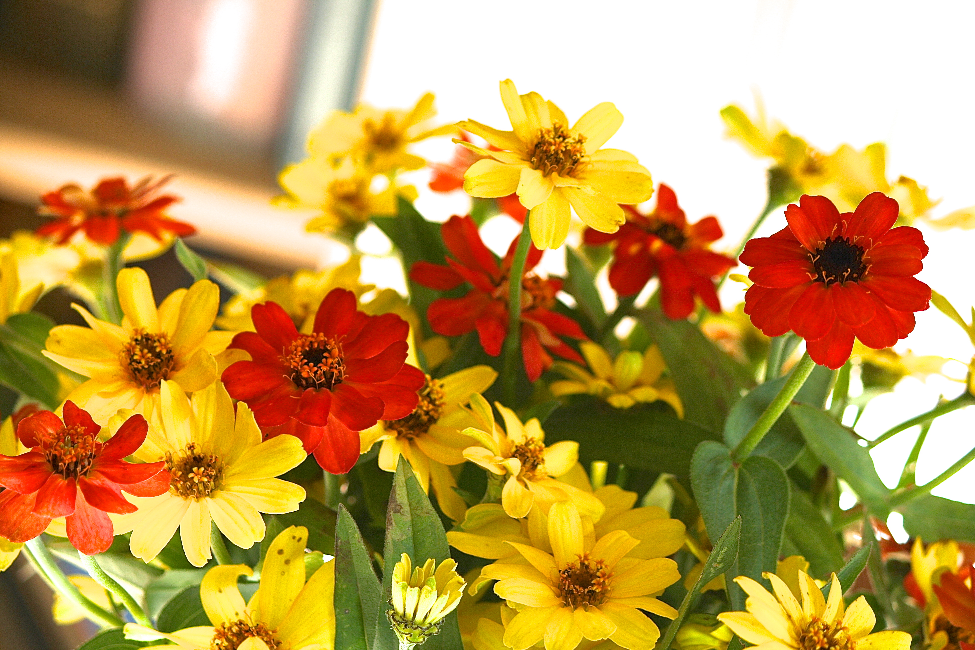 Gorgeous save Eliza! I just love zinnias and your first image is great… warm with a little tilt. Is that two milk bottles you have them in?