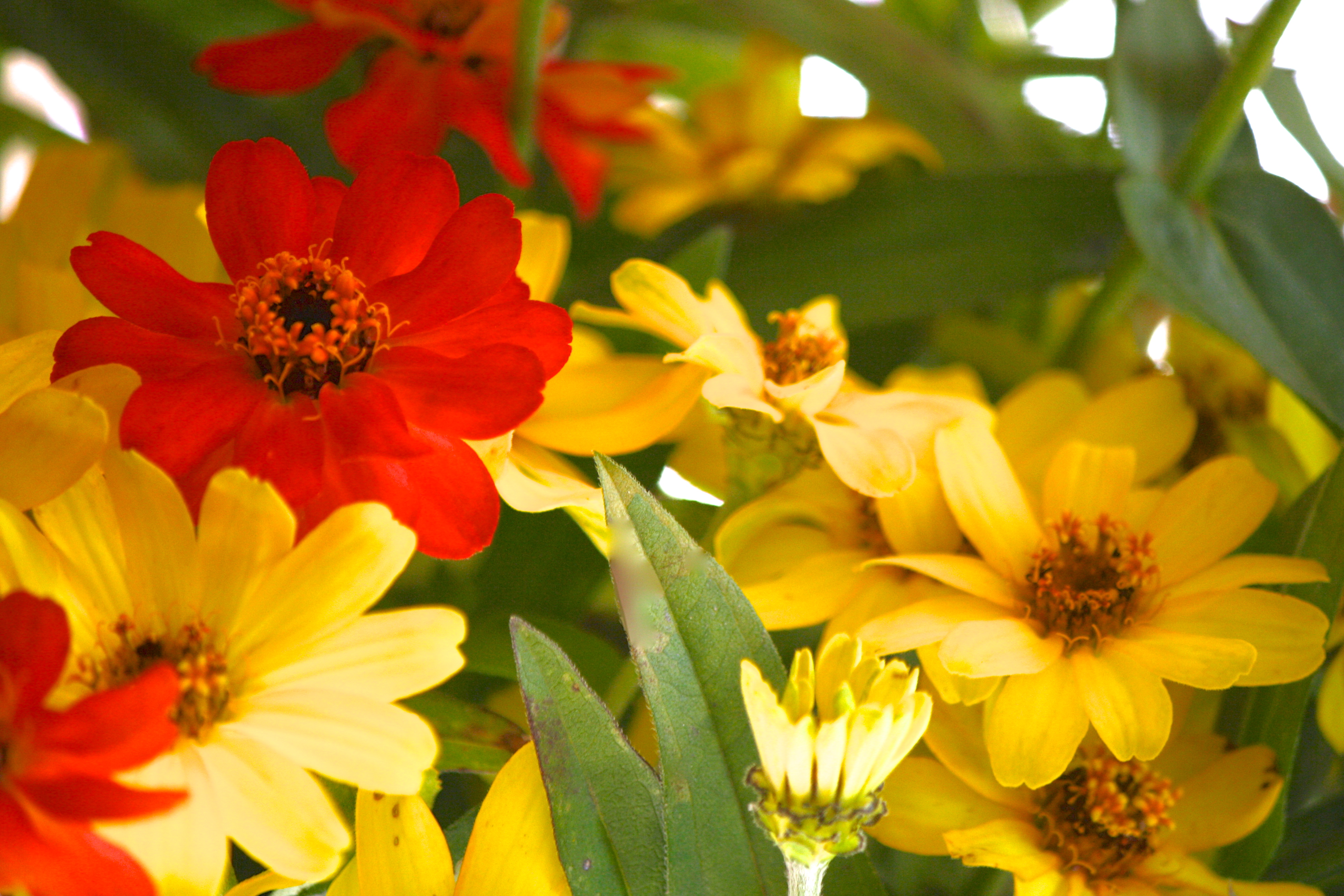 Fireworks…that’s what came to mind when I first saw your zinnias…..the nasturtiums too are great, and clever you for going out and cutting them and now enjoying them.