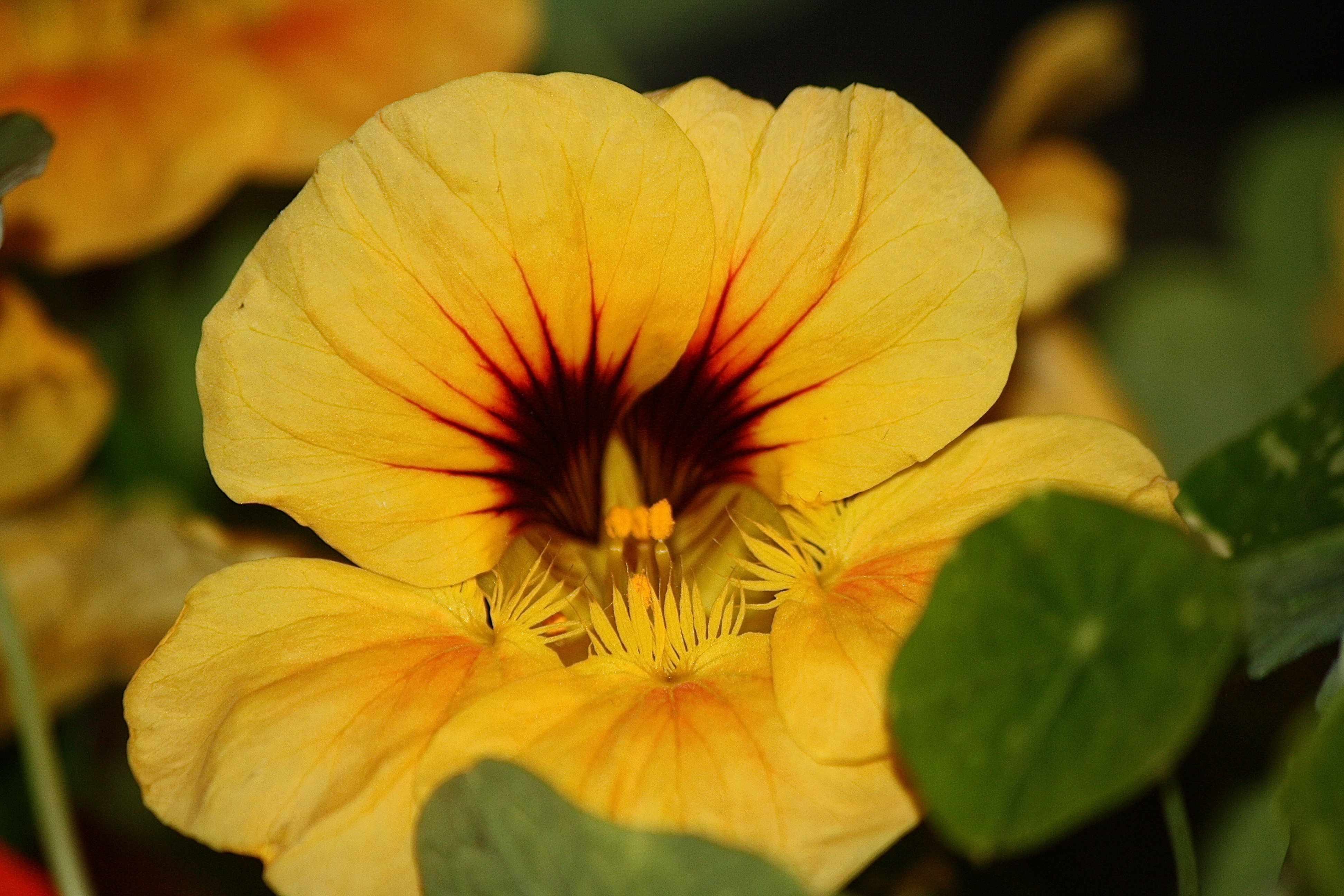 That first frost must come as something of a punch. Frost is rare in my area of southern California and hard freezes are unheard of. In the almost 5 years we’ve been in our current house, we’ve yet had to contend with frost, although we did have frosts a few times at our old home, only 15 miles away. I can still remember my shock at going out into the garden to find my impatiens and many other plants had suddenly turned to mush. I’m glad you were able to find so many cheerful blooms to bring inside before the damage became more serious. The nasturtiums are a nice accompaniment to your charming Halloween display.