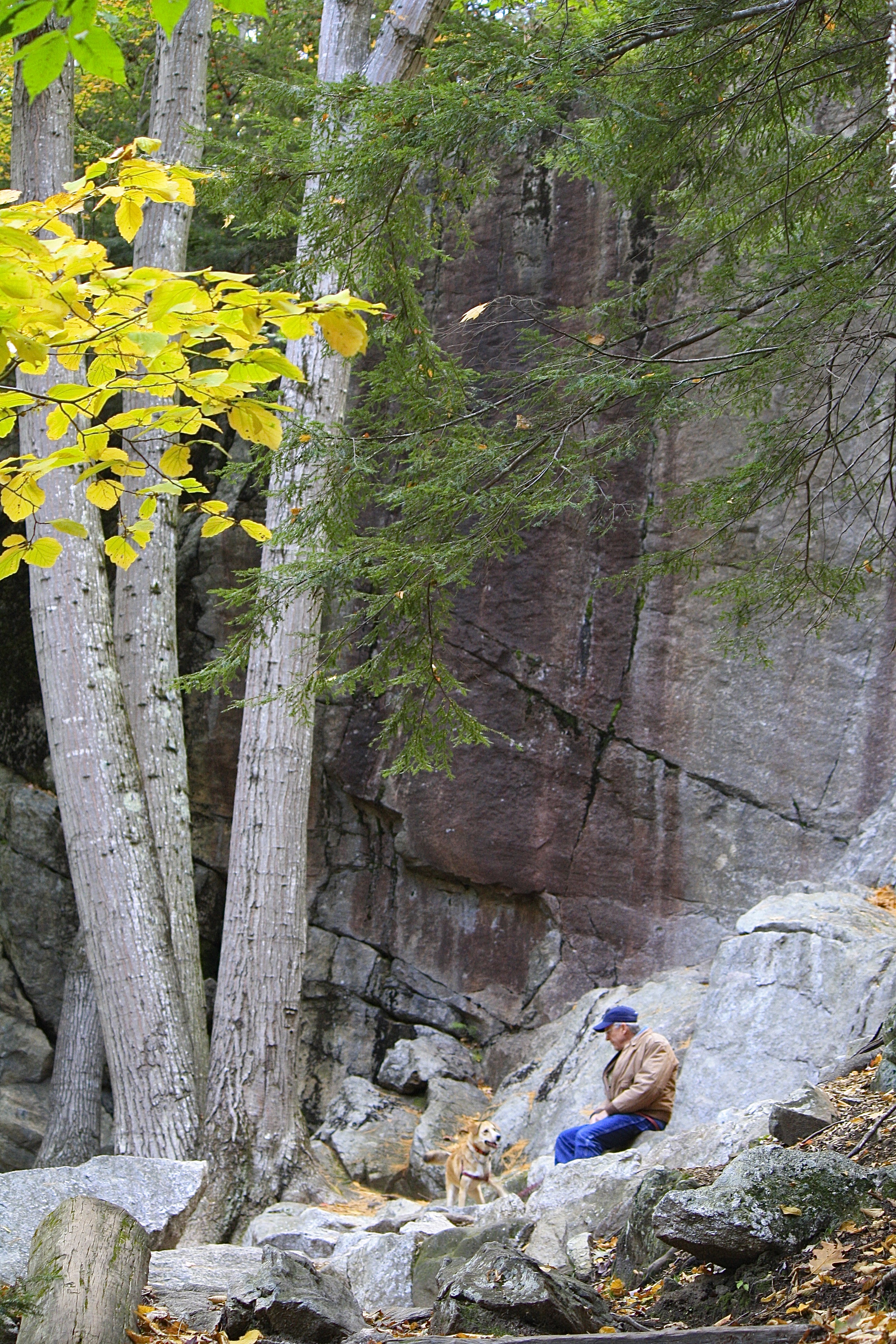 At its base, a 100-foot cliff face favored by rock climbers, rises in a sheer vertical; years ago, my spouse brought our boys here to enjoy this challenge. However, being extremely afraid of heights and fearing for their lives, I refused to witness it.