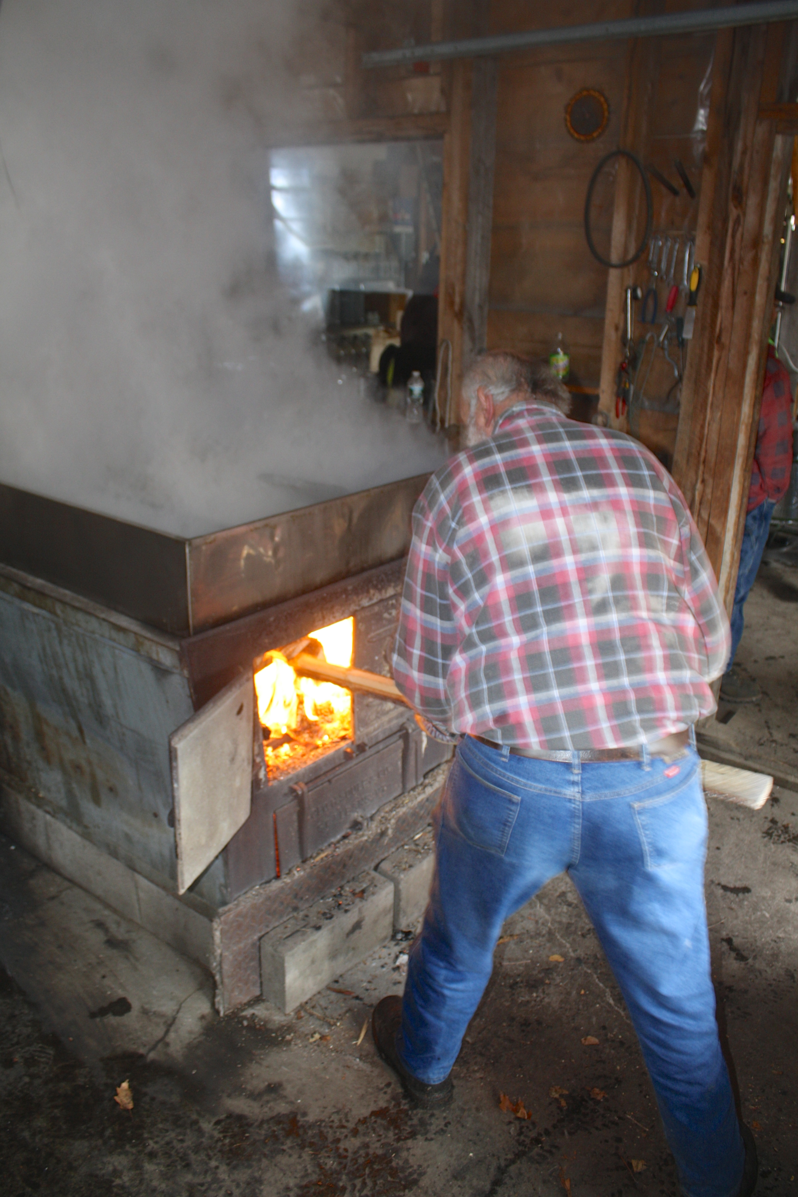 Entertaining clips, thanks. 🙂 Burning wood can be dangerous. Last year a spark ignited their woodpile and took out the evaporator shed before the fire was put out by the volunteer fire department (of which Howard is a member – his quick thinking with a garden hose held it at bay until the FD arrived). A work bee (24 guys showed up) a few days later had them operational to finish out the season. I love the spirit of small towns!