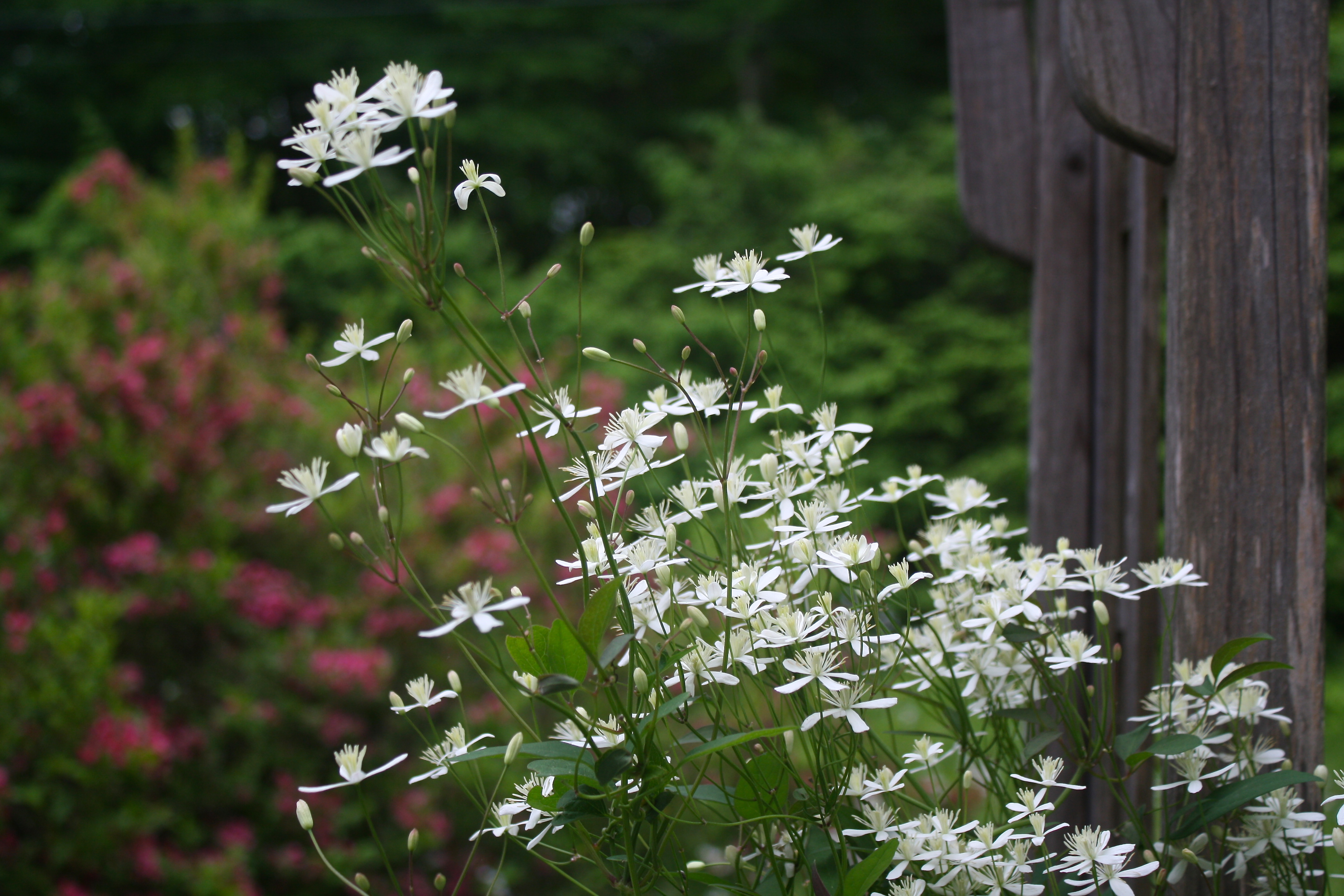 Hi Liv. I believe the plant you are referring to in your back garden is actually Bowman’s root (Gillenia trifoliate), a native plant. I wondered about it being a clematis, as its flowers were suspect. Then a few days later, I came across a post showing it as Bowman’s root.