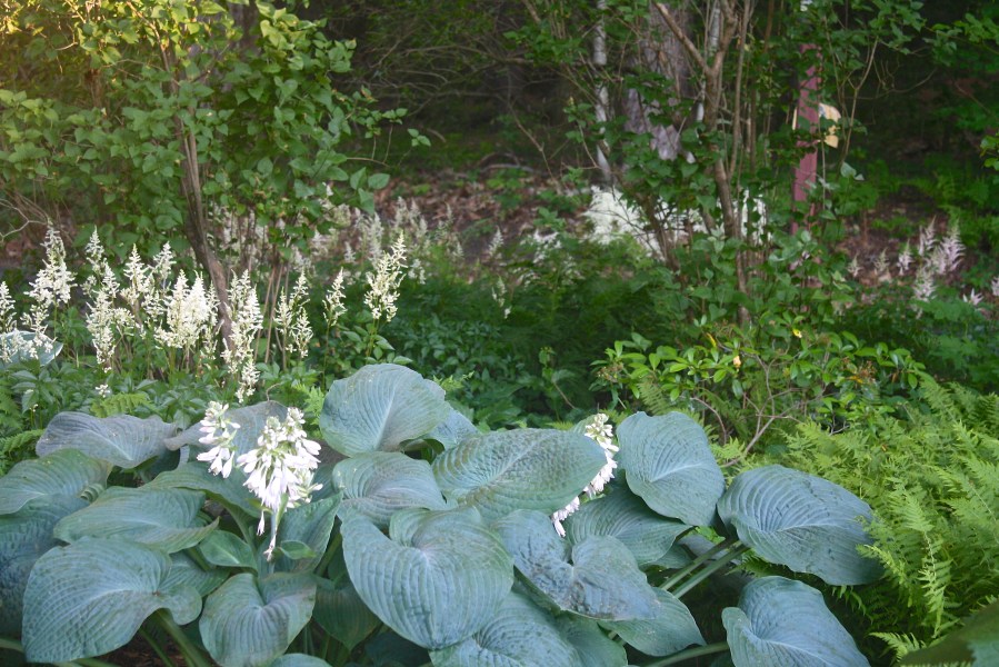Hosta ‘Bressingham Blue’ with white Astilbe chinensis