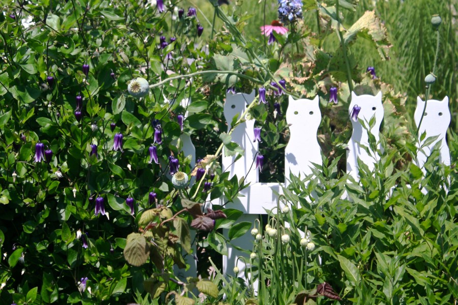 Charming picket fence draped with Clematis ‘Rooguchi’
