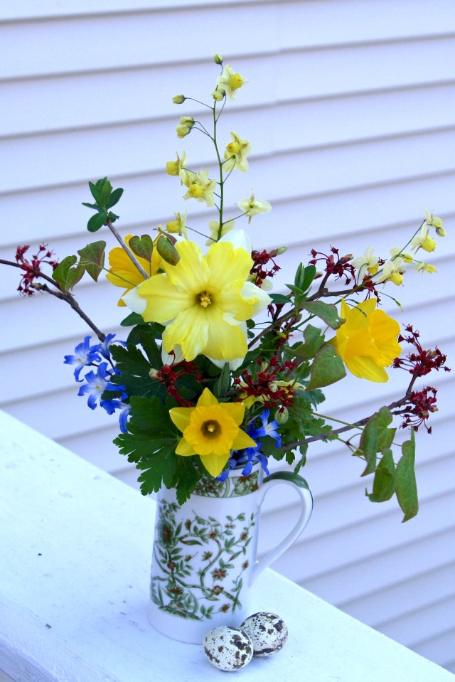 Eliza, my first reaction upon seeing your beautiful vase was that you and I are operating in two different seasons. My own Narcissus, more late winter than spring bloomers here, are already distant memories. I ADORE than Epimedium and the blue Chionoxdoxa looks as though it glows from within.
