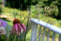 To the vase, I added white and pink phlox (P. paniculata), purple coneflower (Echinacea purpurea), the grass-like flowers of Plume Poppy (Macleaya cordata) and a few blades of Maiden Grass (Miscanthus sinensis ‘Gracillimus’).