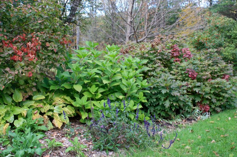 Shrub border: Viburnum, 2 hydrangea, winterberry