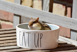 Mean? Chipmunks fill their cheek pouches with food to carry back to their den to store and eat later. For this guy, it’s a really good day!