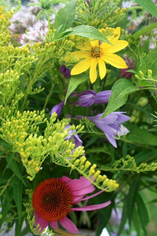 Helianthus, Solidago, Hosta, Echinacea