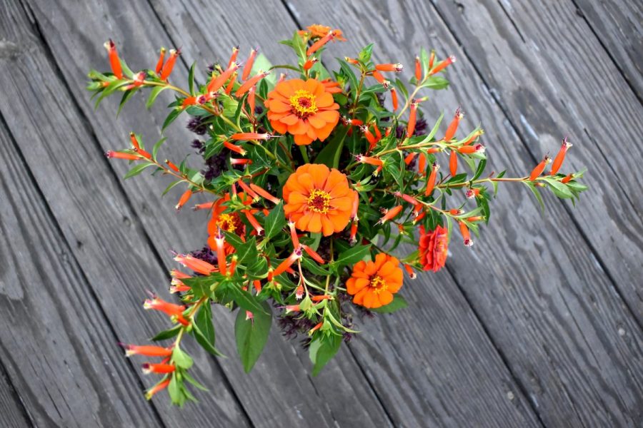 Zinnia and Cuphea, top view