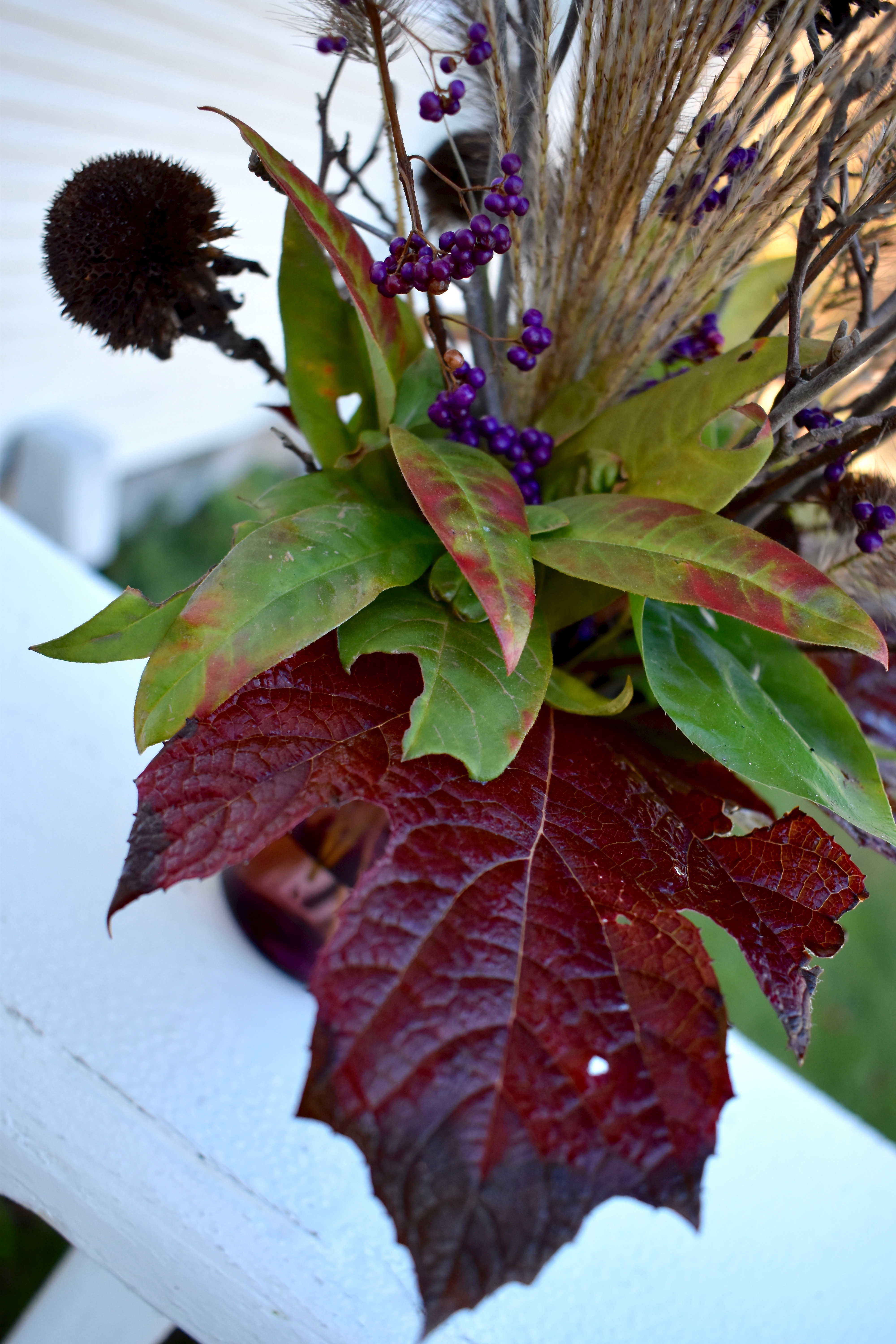 Knockout combo! I wasn’t familiar with burgundy hydrangea or blue beauty berry–very cool.
