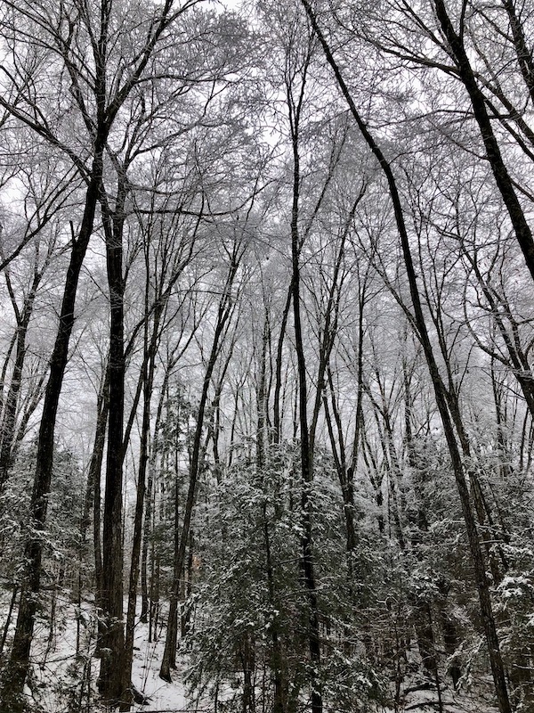 The beauty of that landscape has to be weighed against its inconvenience. I hope no branches fell and you didn’t have to drive anywhere!