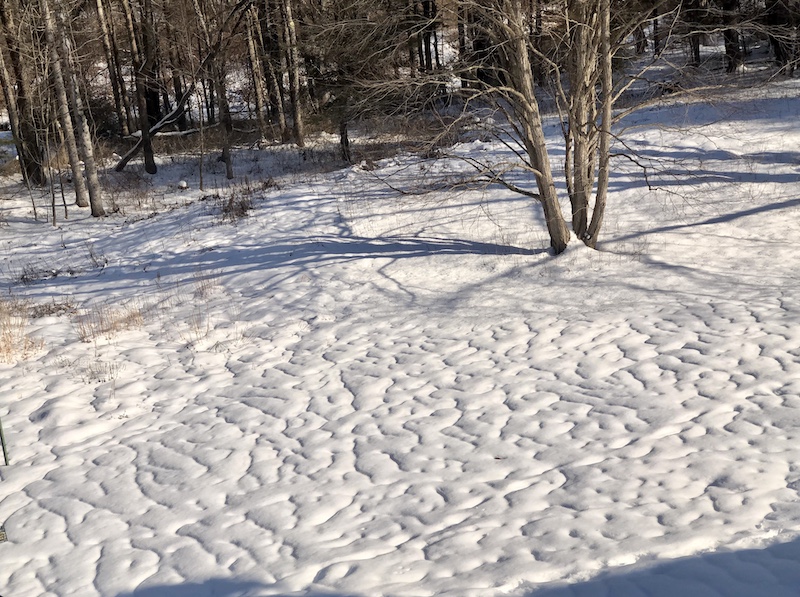 I love what I call nature’s analogies, and this sure fits. Remember when you mentioned that the surface of the Osage Orange looks like a brain? Now your snow reminds me of that fruit.