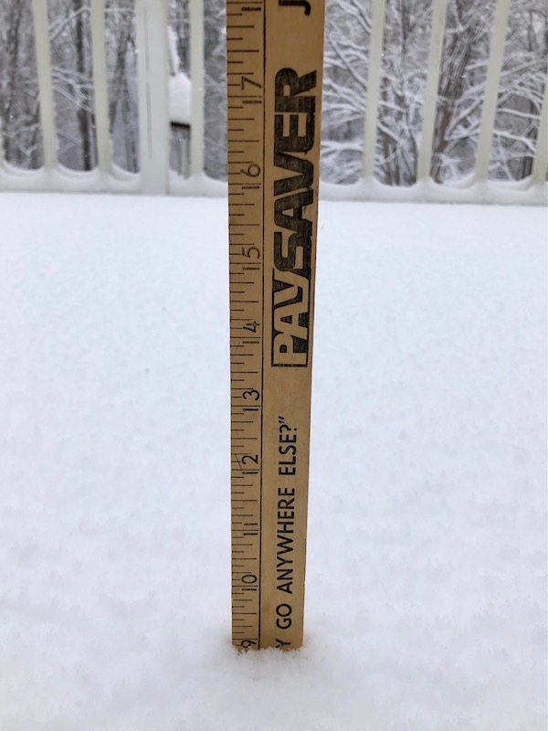My goodness! Someone did a fantastic job cleaning that deck. We got a little more snow than you did. Clif measured 13 inches.