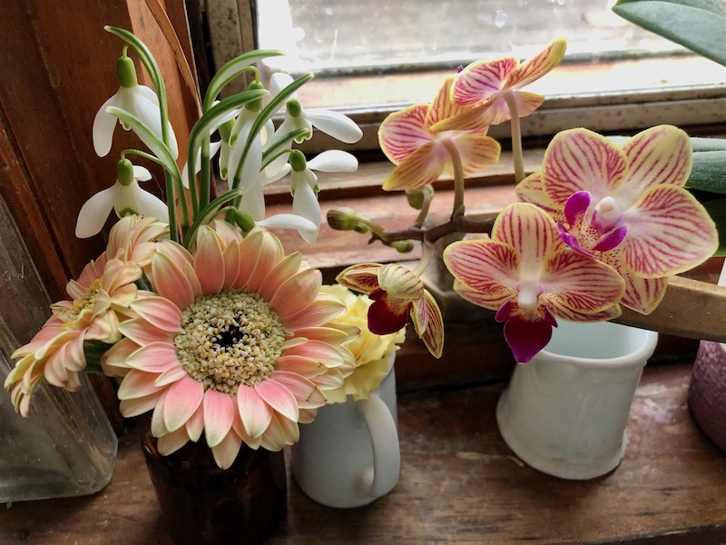 What a lovely still life! It’s nice having a shelf under your window sill for flowers in the sunlight.