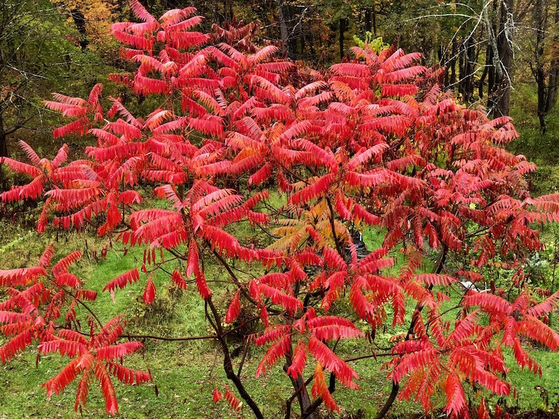 We have at least two native sumacs that give us some autumn color, but not this one. My goodness, what a red!