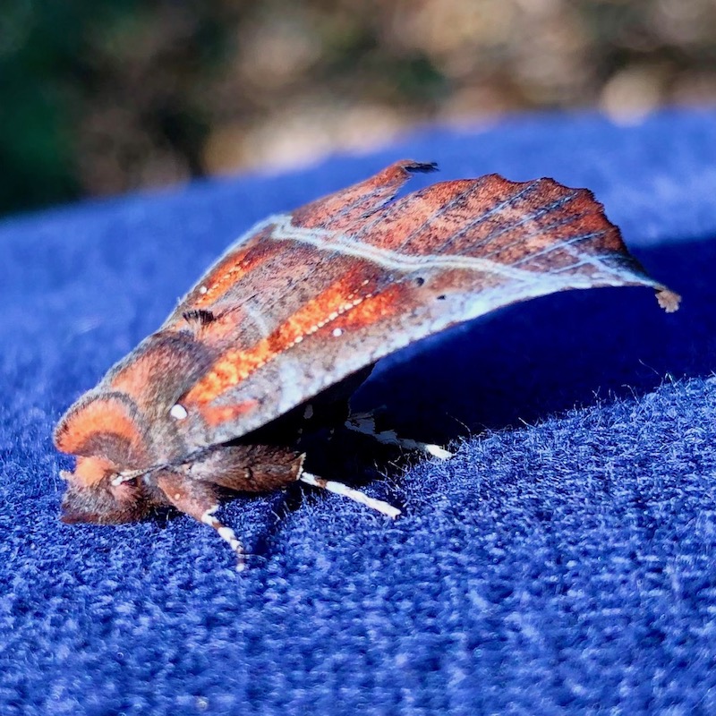 What a lovely moth. Just like an autumn leaf. Great camouflage.