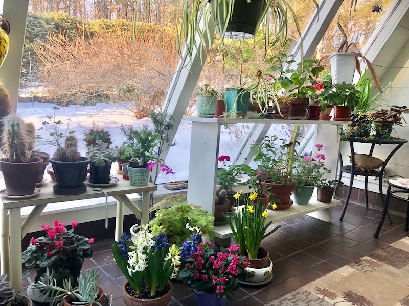 What a lovely way to bring the outside in but keep the winter out! Such a hopeful space. Those indoor plants – especially when in flower – and all that light must transform even the bleaker winter days?