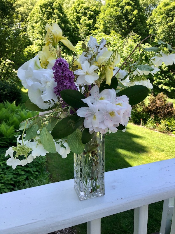 Your Memorial Day arrangement is stunning, Eliza. The RWB flowers, especially the bleeding hearts and forget-me-nots are wonderful, and I love the US flag in the middle. Lilac arrangement is an elegant addition. I hope your holiday was a sweet one. Thanks for this salute.