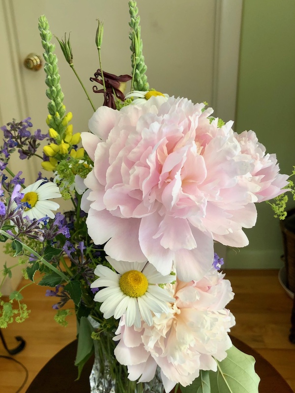 Such a shame peonies don’t last longer into the season. The ones in my area faded faster than usual, compliments of the high heat and humidity. What a lovely vase you’ve prepared though!