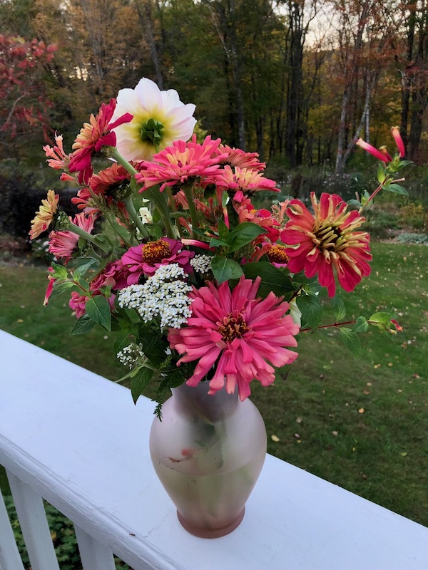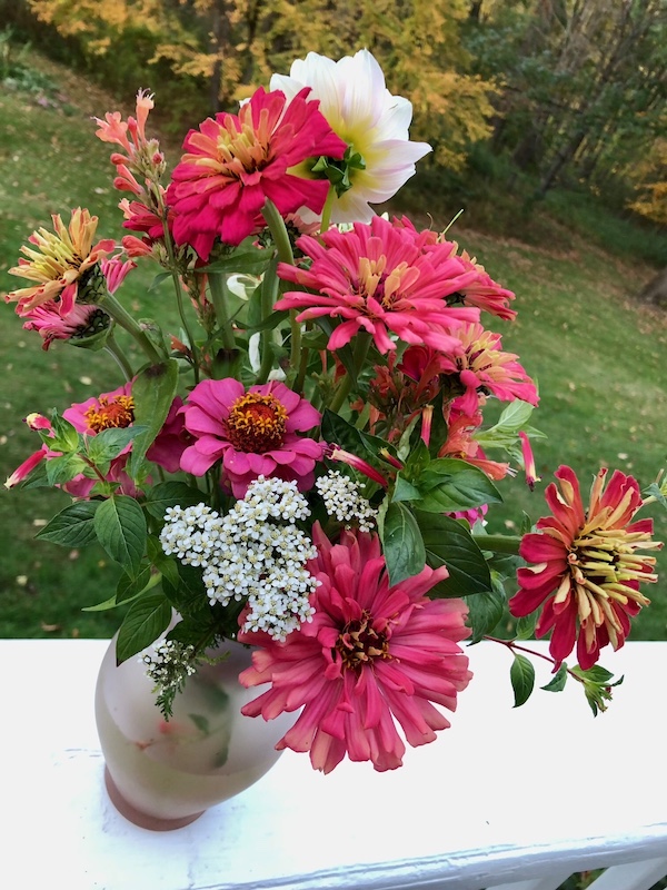 Really beautiful Eliza. The zinnias are lovely colours, and nice large blooms too. And what forethought, making lots of vases for future posts. 😃 Our frosts have been very light so far, so I even still have a cosmos and some sunflowers, sheltered by their neighbours.