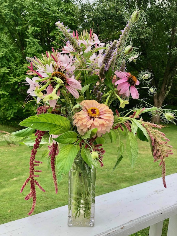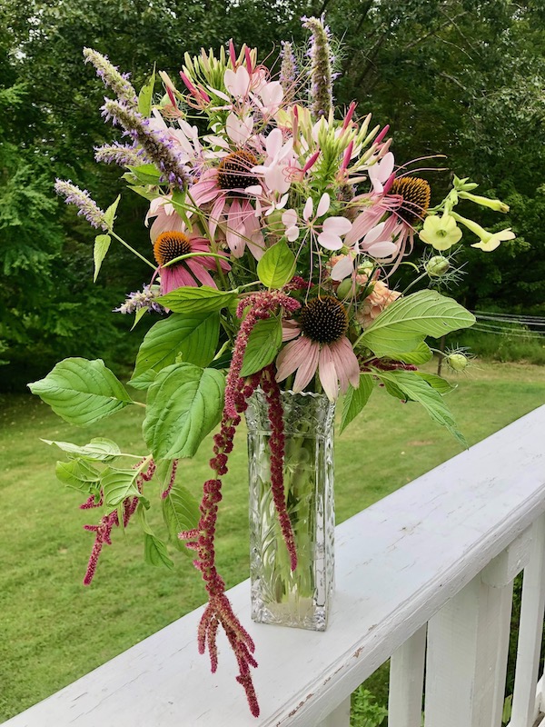 Your arrangements are wild this week but then isn’t that to be expected as we move into late summer? Just yesterday I was bemoaning the fact that I once again failed to sow Cleome seeds, not to speak of sunflower seeds, this year. I’ve tried sowing Amaranthus only once but it didn’t show up until the following year! I have to try it again and work on the timing issue.