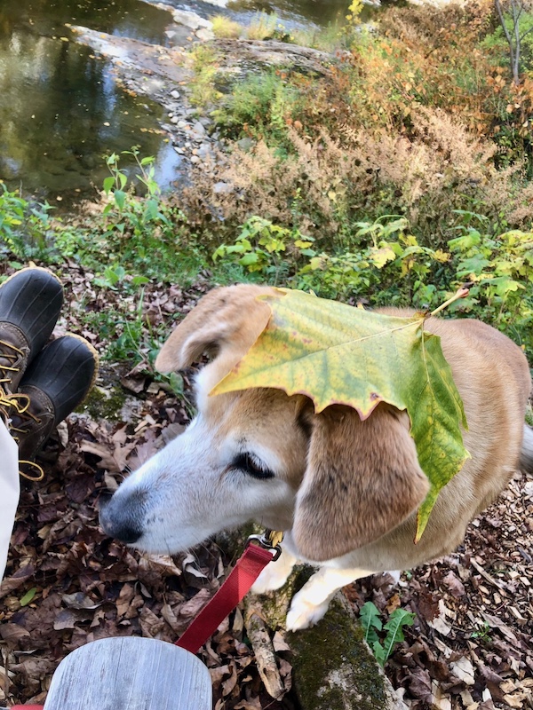 Your Fall colors are terrific, especially the last one with the river. And I do hope you rewarded poor Wren for posing with that leaf on her head! I’m pretty sure the Monk wouldn’t stand for that, even with a handful of cookies as bait, ha!