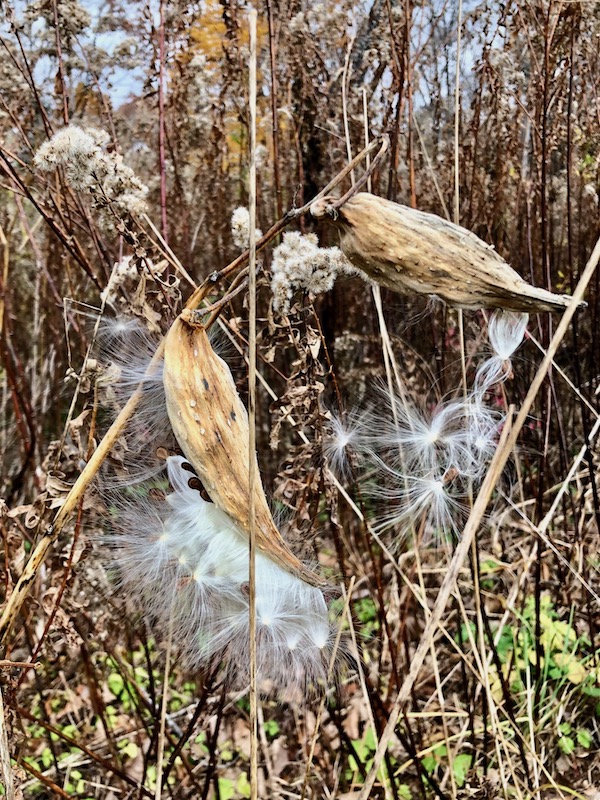 I’ll bet the butterflies enjoyed that milkweed … and now, we can enjoy seeing those silky strands. Still, this is one more sign winter is on its way.