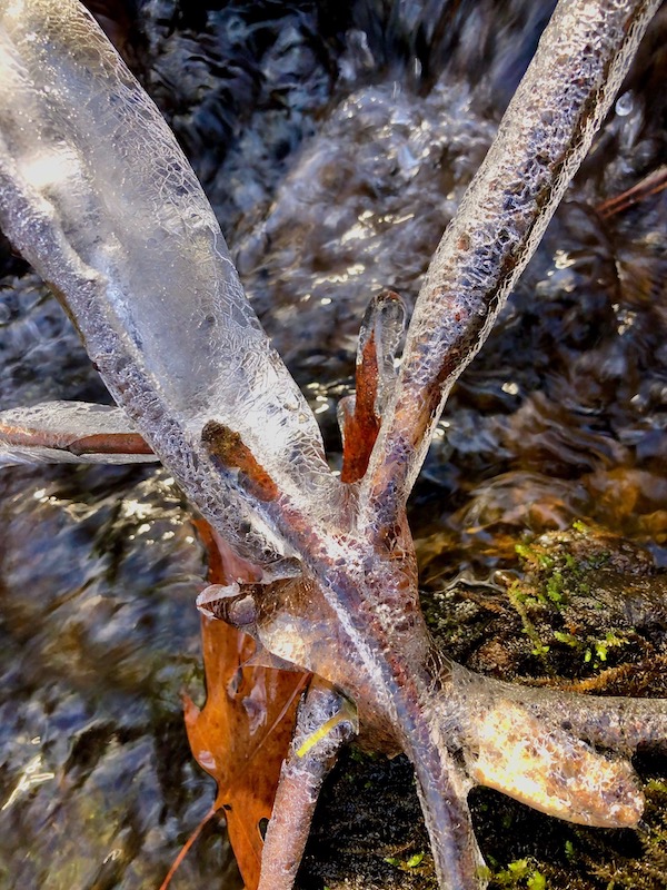 Each December for the festive holidays, I fill an old wooden bucket on the front porch. I usually start in November with a harvest look of dried ‘Annebelle’ hydrangea flower heads and curly seed heads of willow herb (Epilobiumciliatum). Later, I add Christmasy greens from Japanese holly (Ilex × meserveae) and mountain laurel (Kalmia latifolia), as well as white painted branches and finished with a bow and a little gnome for whimsy.