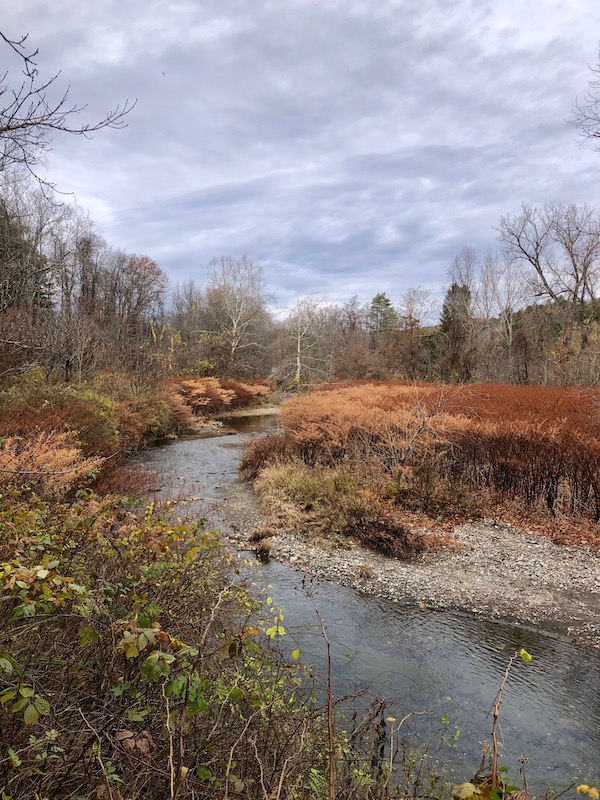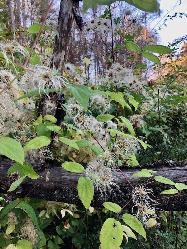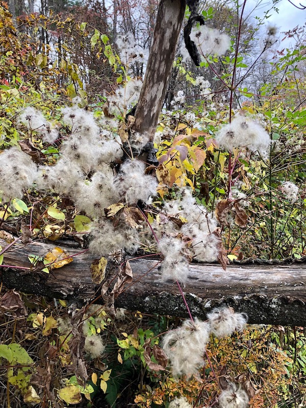 My arrangement was collected from my yard and trails, seeking out colorful foliage, fruit and seed heads. I happily cut invasive plants– euonymous, privet, barberry, burning bush and bittersweet, which all show beautiful autumn foliage. Also included: raspberry leaves, dried hydrangea flowers, Japanese anemone, goldenrod and coneflower seed heads.